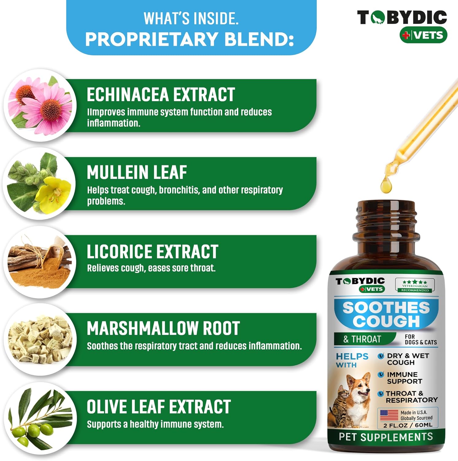 Natural Dog Cough Medicine & Antibiotic for Cats Respiratory Infection – Sneezing Relief & Kennel Cough Treatment – Trachea Collapse & Pet Asthma Support – Made in USA