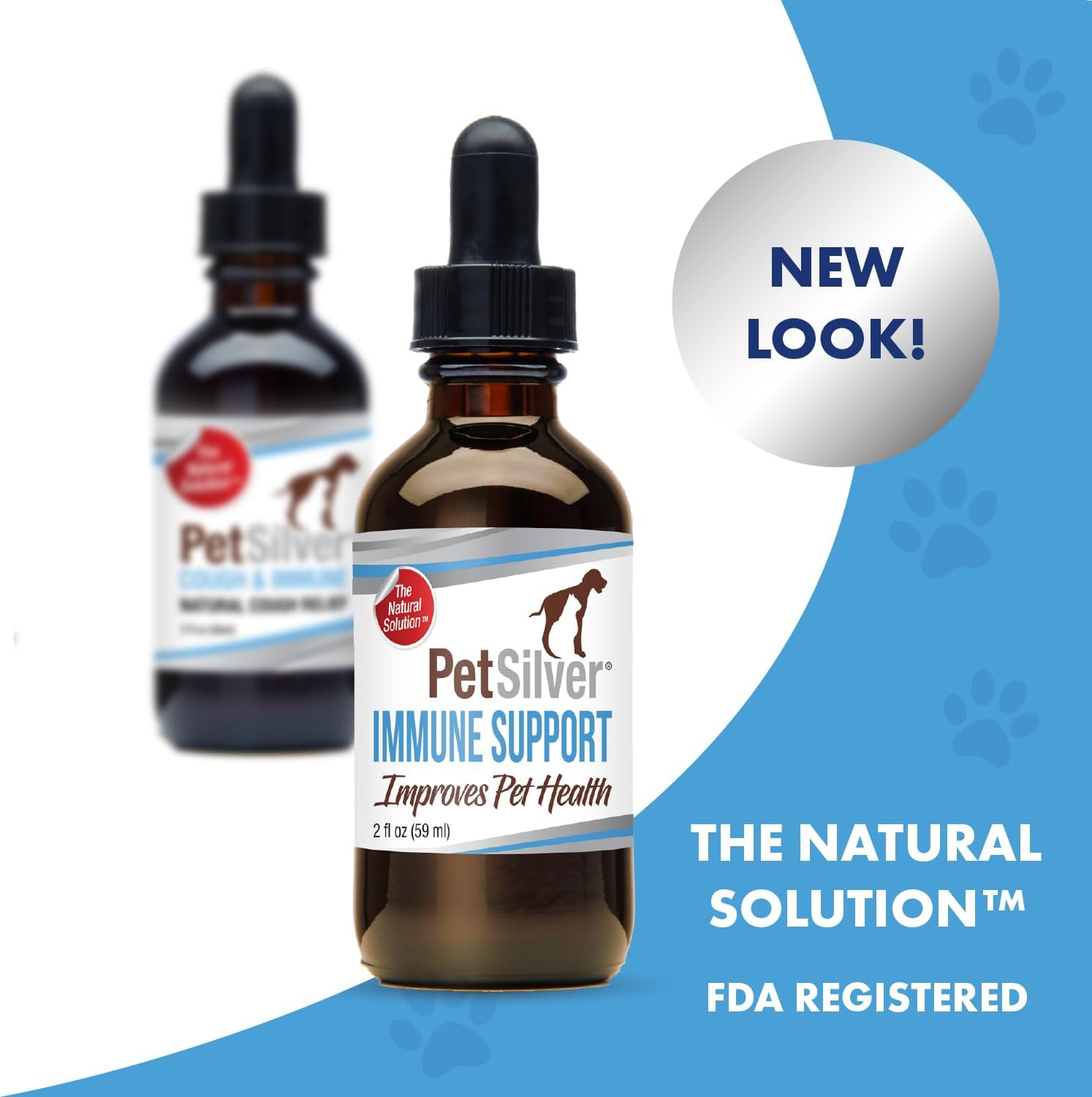 PetSilver Immune Support Supplement, Kennel Cough, Respiratory, Sinus, and Allergy Relief for Dogs & Cats, All Natural Patented Chelated Silver, Easy to Use Dropper, 2 fl oz